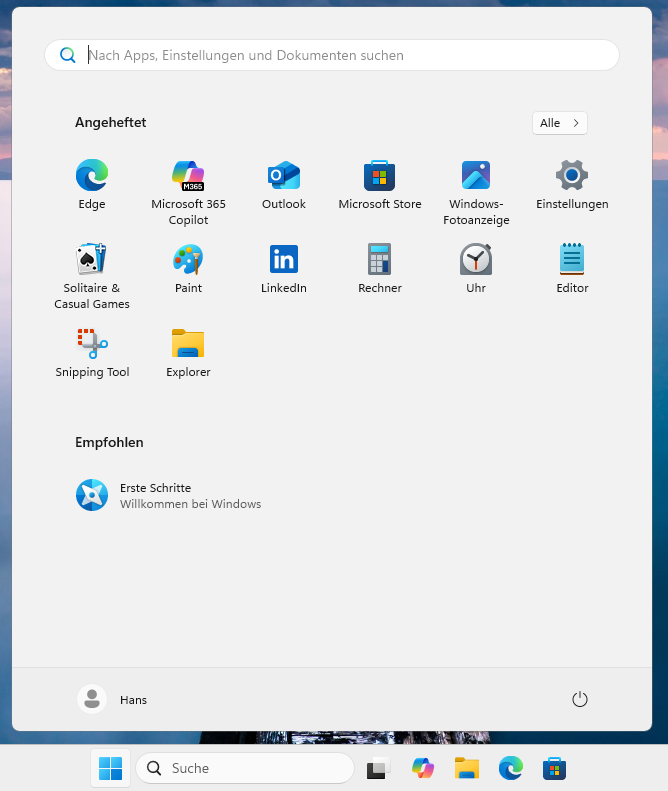 Das von uns entwickelte Windows 11 Image ist speziell für den geschäftlichen Einsatz vorbereitet. Für ein privat genutztes System ist es aber ebenfalls geeignet. Ziel ist es, ein aufgeräumtes, professionelles Arbeitsumfeld zu schaffen, das frei von unnötigen Ablenkungen ist.